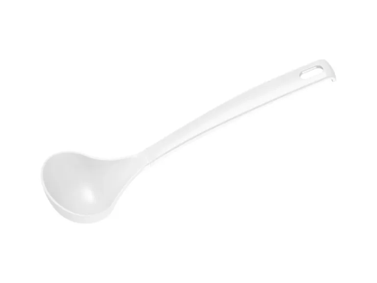 Fackelmann Soßenlöffel Blanca, Food&More, 2H, 260 mm, Griffende mit Stopp-Funktion, spülmaschinengeeignet, für beschichtete Töpfe/Pfannen geeignet, hitzebeständig bis 180°C, Made in Germany, Weiß