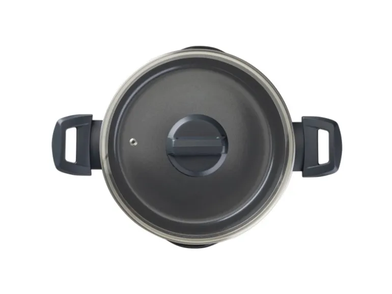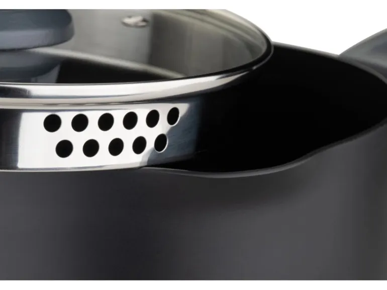 Inklusive Deckel aus gehörtetem Glas mit Entlüftungsventil und Ausgießfunktion