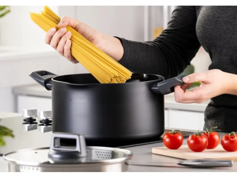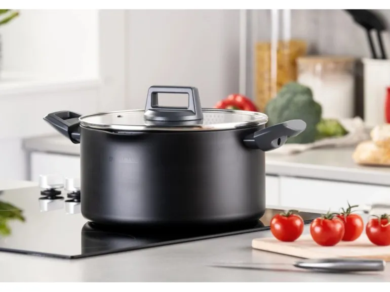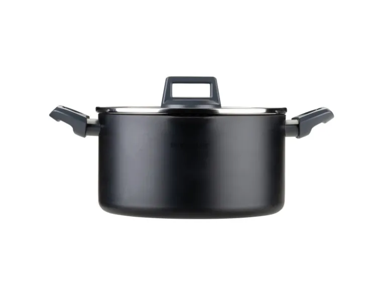 Der Kochtopf passt perfekt zu den Statement Küchenhelfern. Der Kochtopf mit Deckel ist backofengeeignet und hitzebeständig bis + 150 °C und sowohl für Gas-, Elektro und Induktionsherd als auch für Glaskeramikkochfelder geeignet.