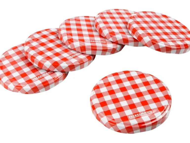 Der Fackelmann Twist-off Deckel besteht aus lackiertem Weißblech mit einem Durchmesser von 8,2 cm. Im Lieferumfang sind 6 Stück enthalten.