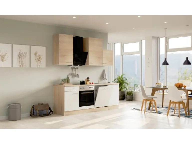 Die 220 cm breite Küchenzeile (B x H x T) besteht aus:
