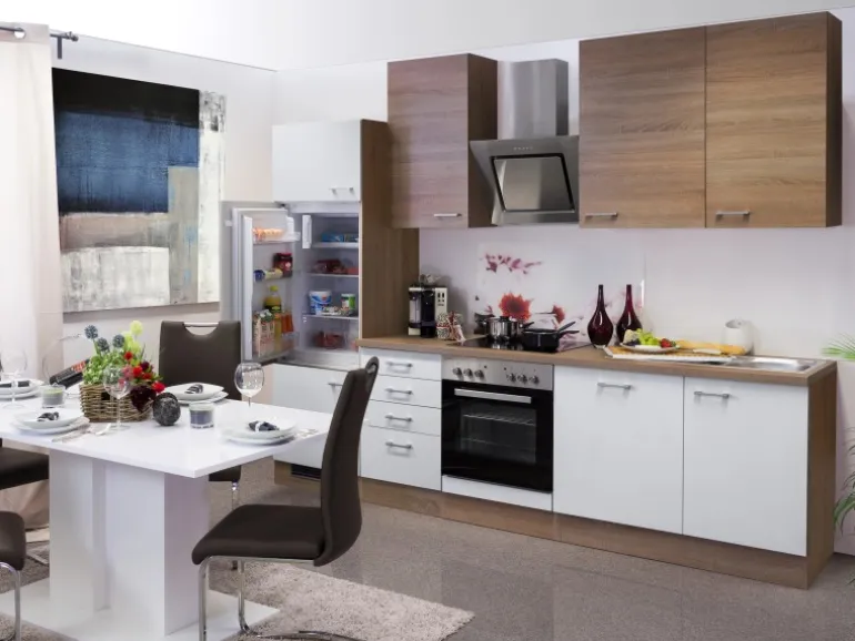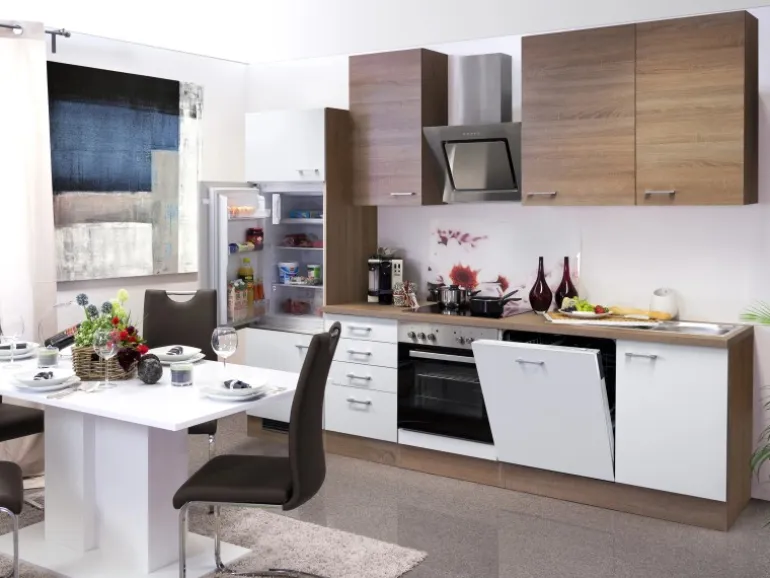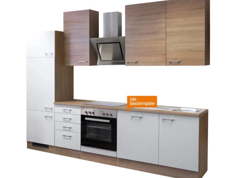 Die 280 cm breite Küchenzeile besteht aus (BxHxT):