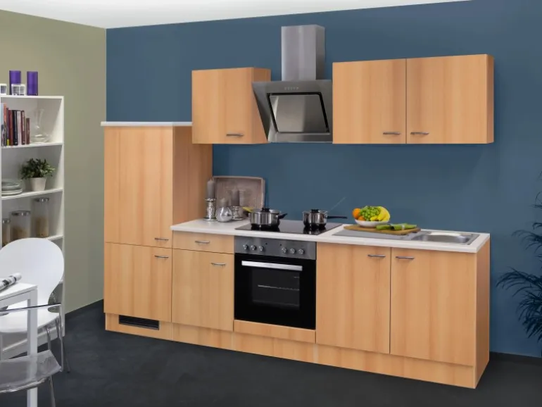 Die 270 cm breite Küchenzeile besteht aus (BxHxT):