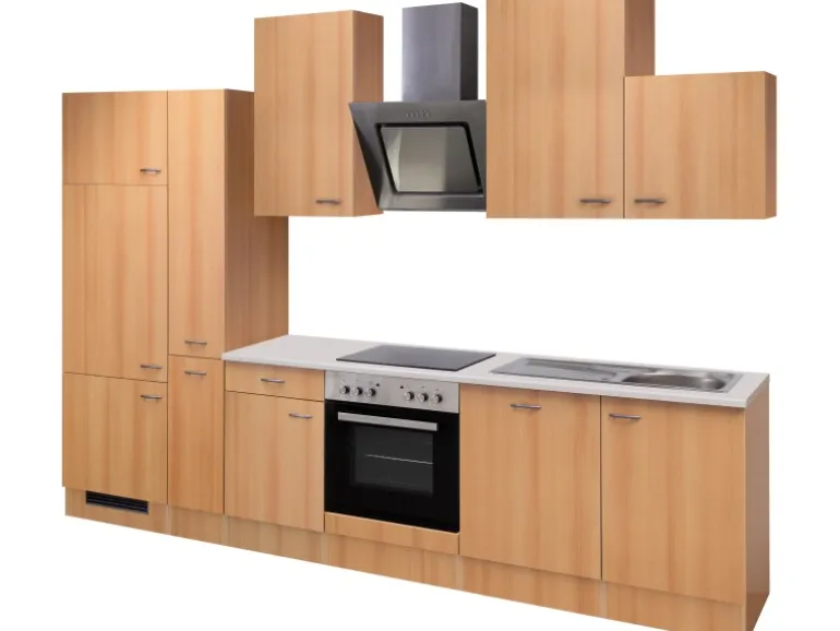 Die 310 cm breite Küchenzeile besteht aus (BxHxT):