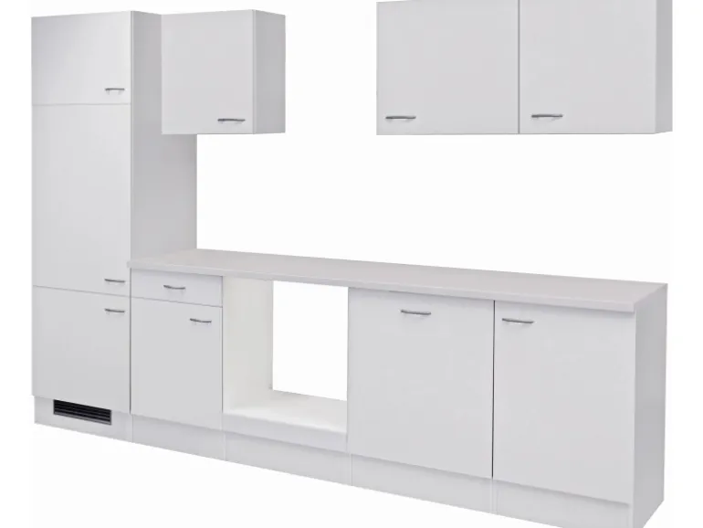 Der 280 cm breite, 200 cm hohe und 60 cm tiefe Küchen-Leerblock besteht aus (BxHxT):