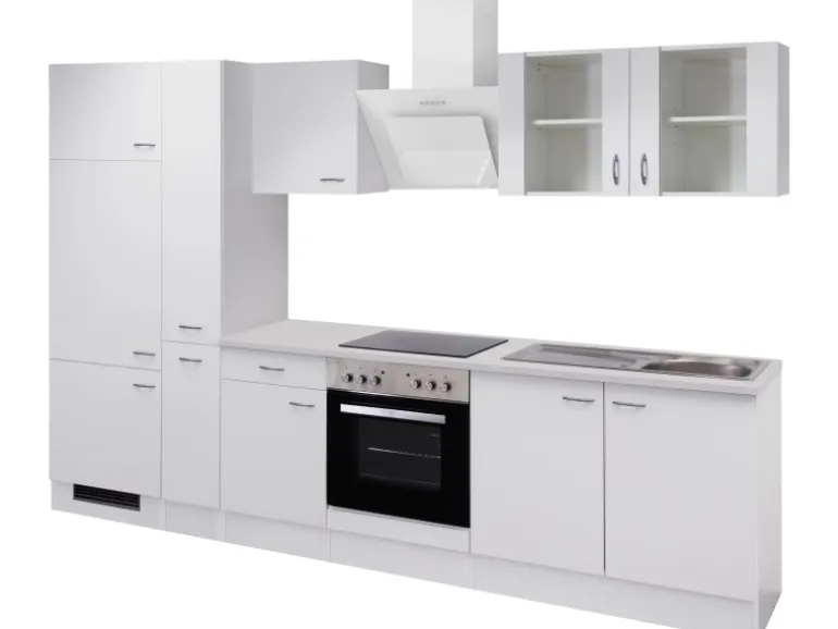 Die 300 cm breite Küchenzeile besteht aus (BxHxT):