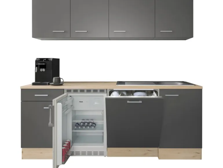 Die 210 cm breite Küchenzeile (B x H x T) besteht aus: