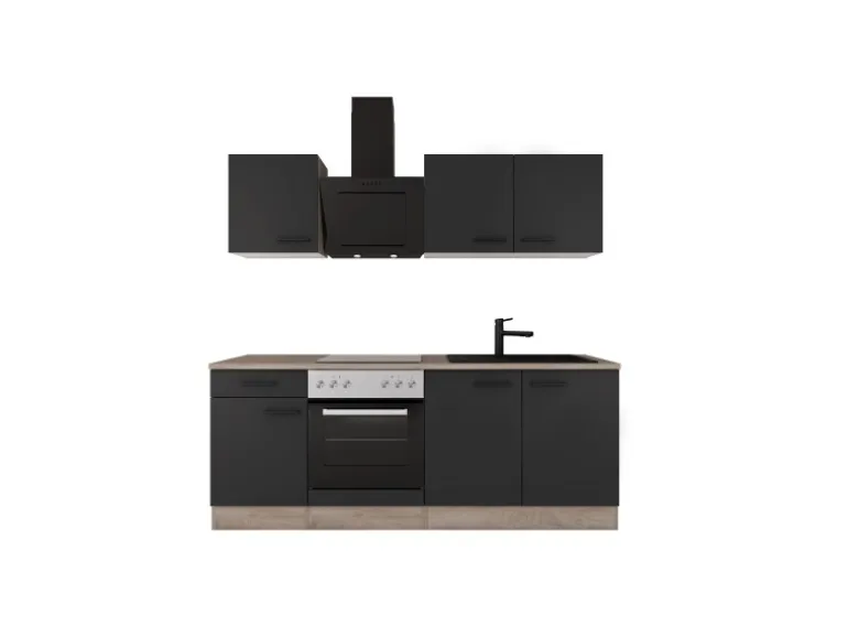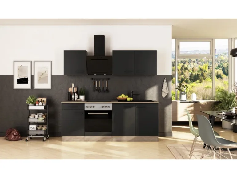 Küchenzeile (reversibel) mit pflegeleichter Anti-Fingerprint-Oberfläche in Schwarz matt