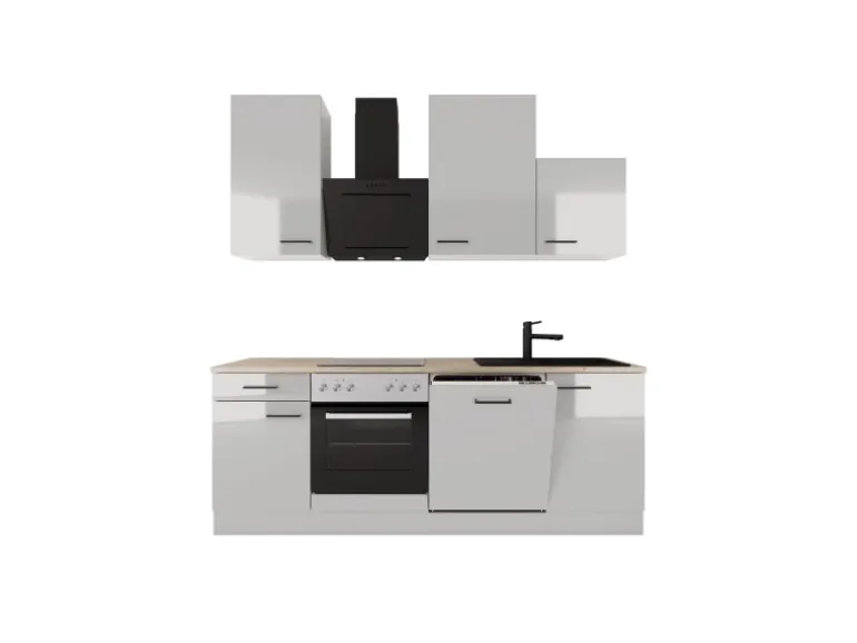Die 220 cm breite Küchenzeile (B x H x T) besteht aus: