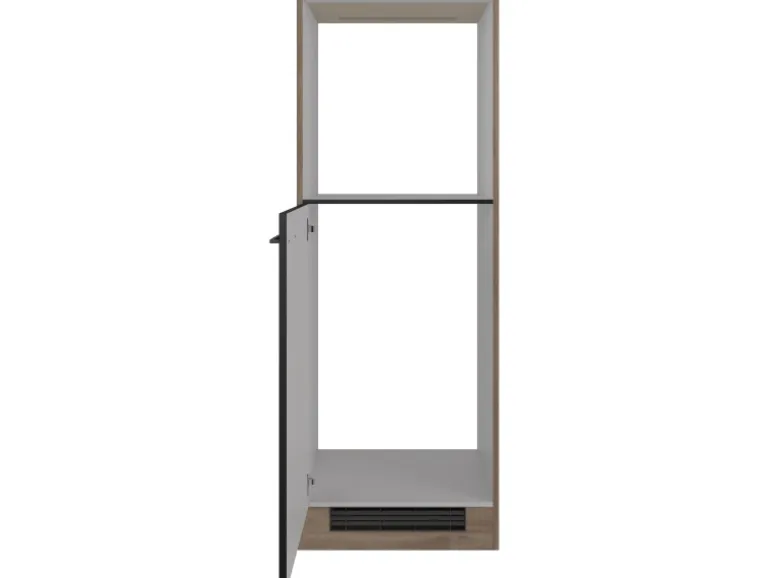 Der 60 cm breite Demi-Geräteumbauschrank weiß durch eine hochwertige Verarbeitung sowie Materialauswahl zu gefallen. Dabei verfügt der kompakte Demi-Geräteumbauschrank sowohl über zwei Gerätenischen für Einbaukühlschrank und Einbaubackofen als auch über eine Drehtür.