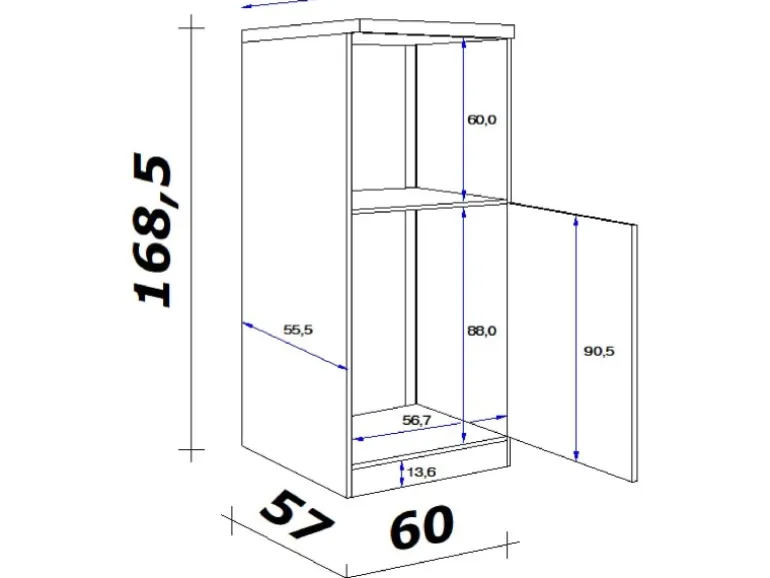 Maße: (B x H x T) 60 x 169 x 60 cm