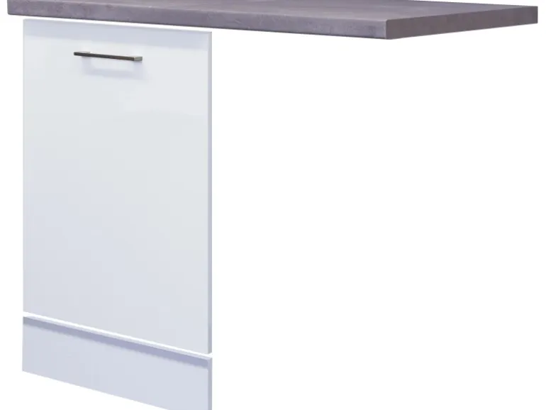 Bestehend aus Arbeitsplatte, Sockelstück und Möbelfront mit Griff für vollintegrierten Geschirrspüler