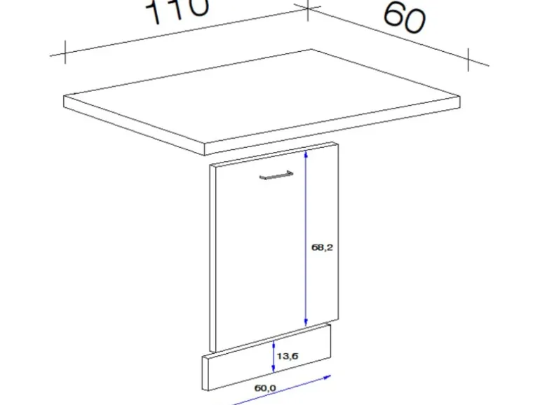 Bestehend aus Arbeitsplatte, Möbelfront für vollintegrierten Geschirrspüler und Sockelstück