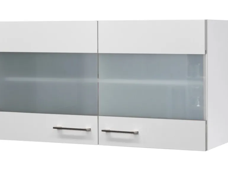 Der 100 cm breite Glas-Oberschrank verfügt über einen Einlegeboden und weiß durch eine hochwertige Verarbeitung sowie Materialauswahl zu gefallen.