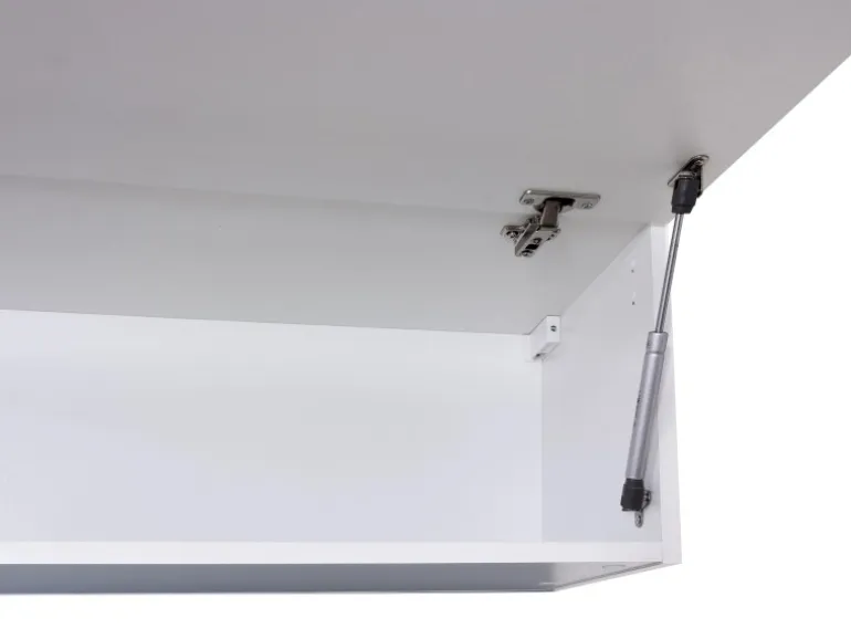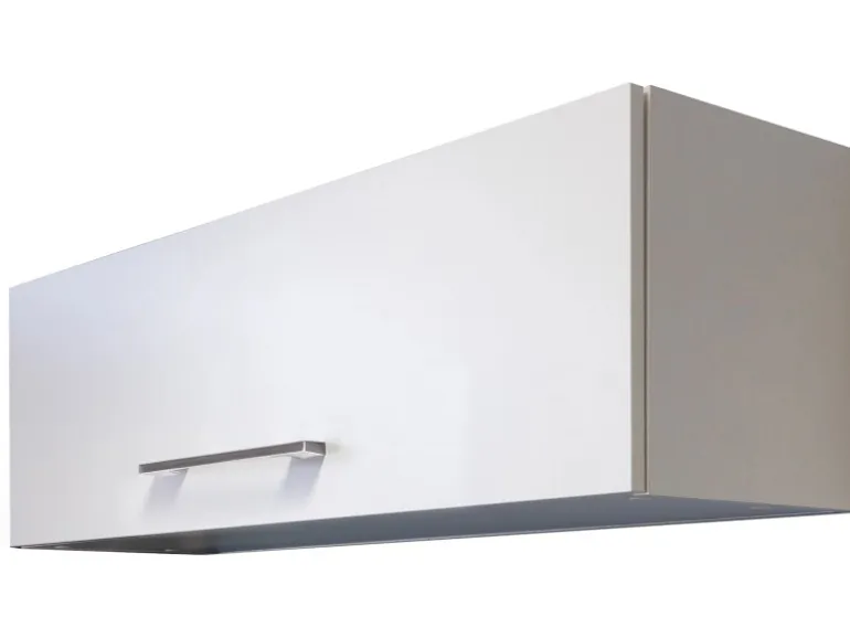Der 100 cm breite Kurz-Oberschrank verfügt über eine Klappe mit Gasdruckfeder und weiß durch eine hochwertige Verarbeitung sowie Materialauswahl zu gefallen.