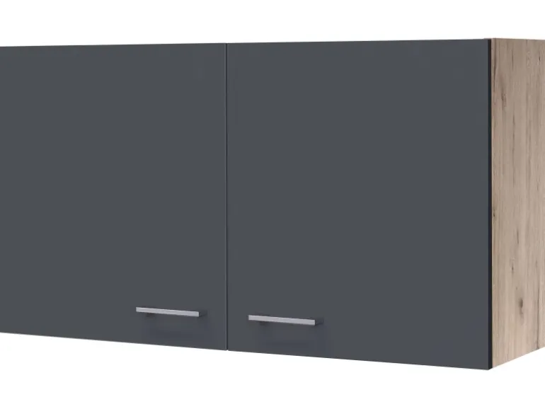 Der 100 cm breite Oberschrank mit Drehtüren verfügt über einen Einlegeboden und weiß durch eine hochwertige Verarbeitung sowie Materialauswahl zu gefallen und garantiert Ihnen auch auf kleinen Flächen ein Höchstmaß an Stauraum.