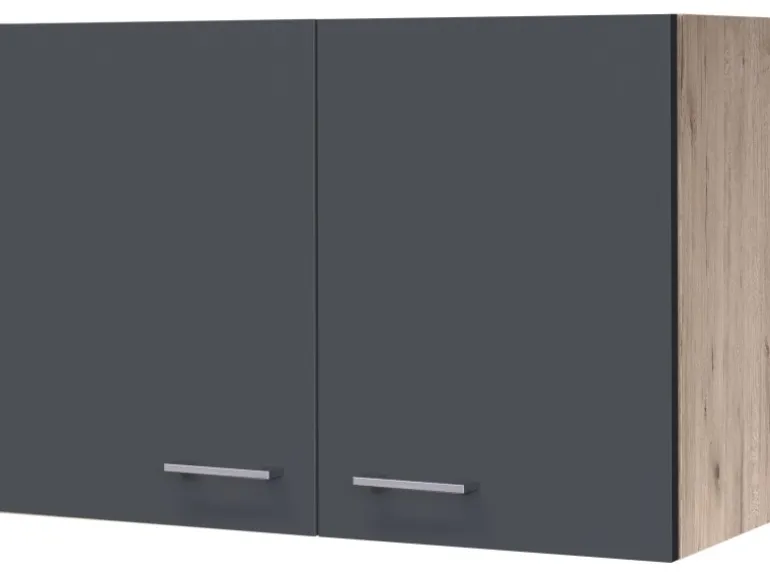 Der 80 cm breite Oberschrank mit Drehtüren verfügt über einen Einlegeboden und weiß durch eine hochwertige Verarbeitung sowie Materialauswahl zu gefallen und garantiert Ihnen auch auf kleinen Flächen ein Höchstmaß an Stauraum.