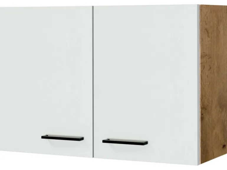 Der 80 cm breite Oberschrank mit Drehtüren verfügt über einen Einlegeboden und weiß durch eine hochwertige Verarbeitung sowie Materialauswahl zu gefallen und garantiert Ihnen auch auf kleinen Flächen ein Höchstmaß an Stauraum.