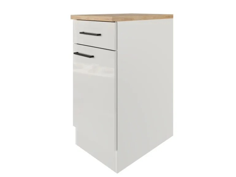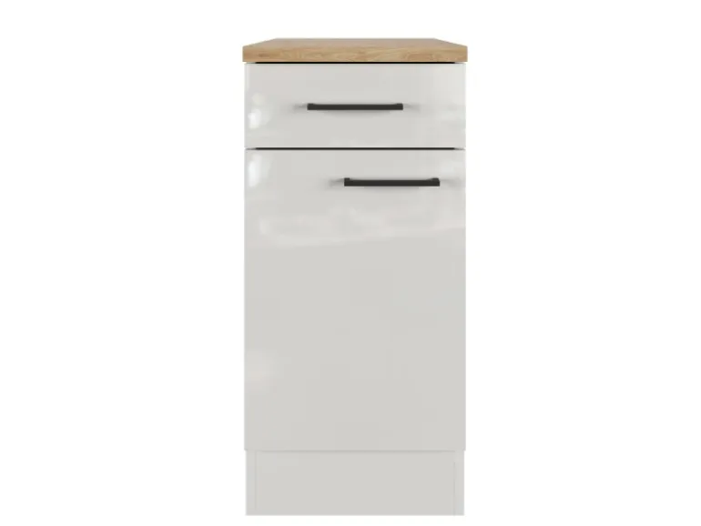 – Griffe- Form: Bügelgriff- Farbe: Schwarz Ausführung- Inklusive Arbeitsplatte (Stärke 28 mm)- 1 Drehtür- 1 Einschubkasten- 1 Einlegeboden