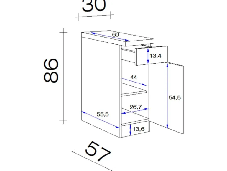 Maße: (B x H x T) 30 x 86 x 60 cm