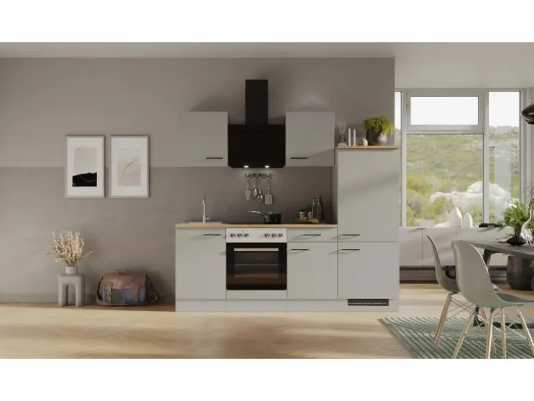 Flex-Well Küchenzeile mit pflegeleichter Oberfläche in Lichtgrau (glänzend)