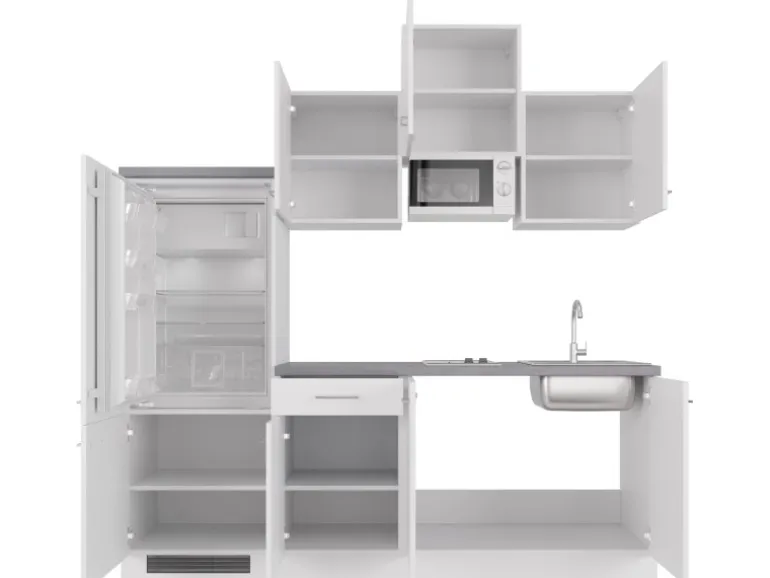 Die 210 cm breite Singleküche (B x H x T) besteht aus: