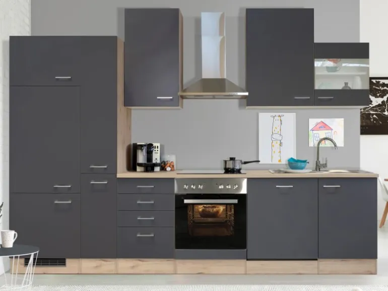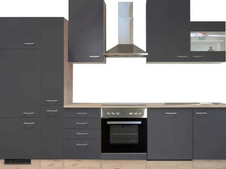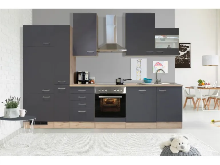 Die 310 cm breite Küchenzeile (B x H x T) besteht aus: