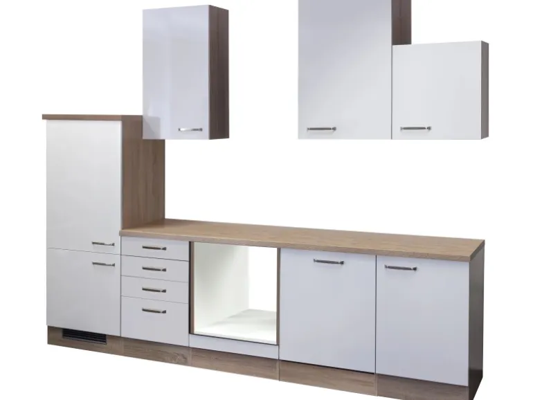 Der 280 cm breite, 234 cm hohe und 60 cm tiefe Küchen-Leerblock besteht aus (BxHxT):
