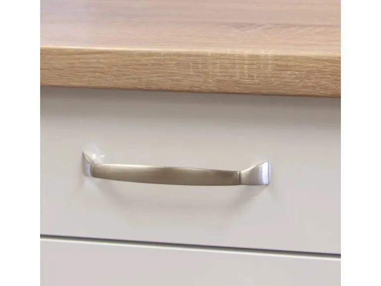 Zwei 89 cm hohe Hängeschränke und ein 55 cm hoher Hängeschrank mit bis zu zwei Einlegeböden bieten reichlich Platz für Geschirr und Gläser. Im Unterschrank mit drei Schubkästen und einem Auszug finden Besteck, Töpfe und/oder Vorräte ihren Platz. Auch im hohen Geräteumbauschrank mit 88 cm hoher Kühlschranknische und drei Drehtüren und dem Spülenunterschrank mit eingebauter Edelstahlspüle steht genügend Fläche zur Verfügung, um noch mancherlei Küchen- und Putzutensil zu verstauen. Besonders chic und praktisch ist der Apothekerhochschrank mit zwei Auszügen und fünf Ablagen, ideal zur Aufbewahrung von Vorräten und Flaschen. Bei Bedarf können Sie Ihre Küche einfach mit weiteren Schränken aus der Serie erweitern und auch zu einer Winkelküche ausbauen.