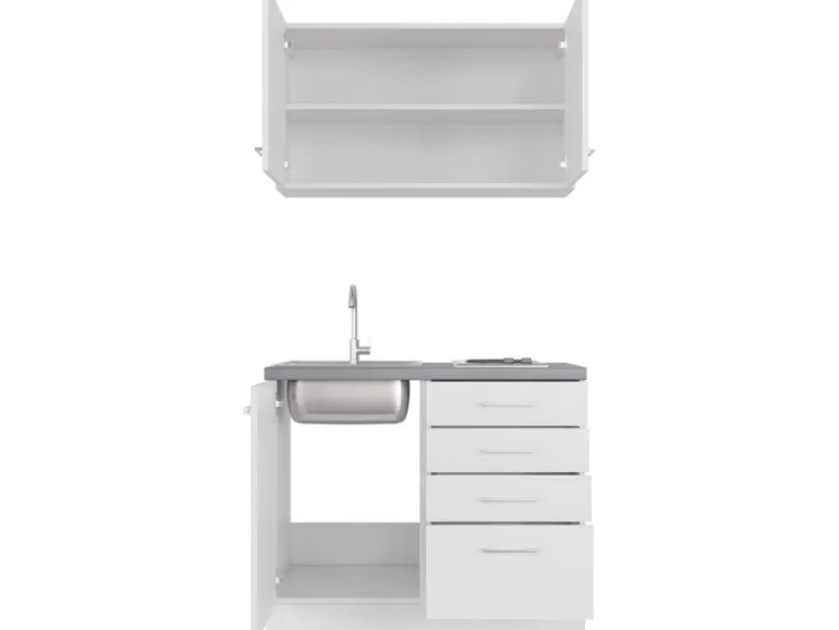 Die 100 cm breite Single-Küchenzeile besteht aus (H x B x T):