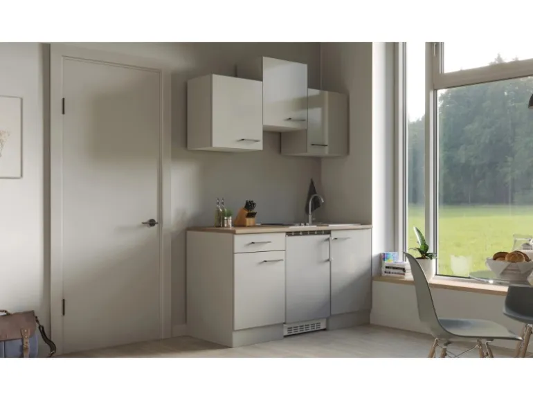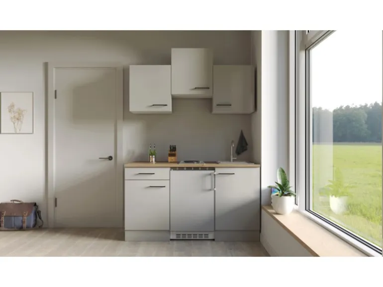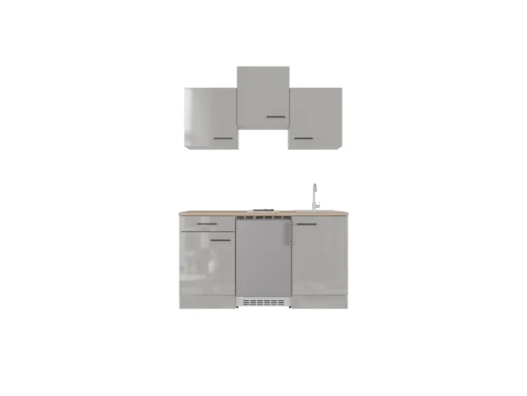 Klassische Singleküche mit pflegeleichter Oberfläche in Lichtgrau (glänzend)