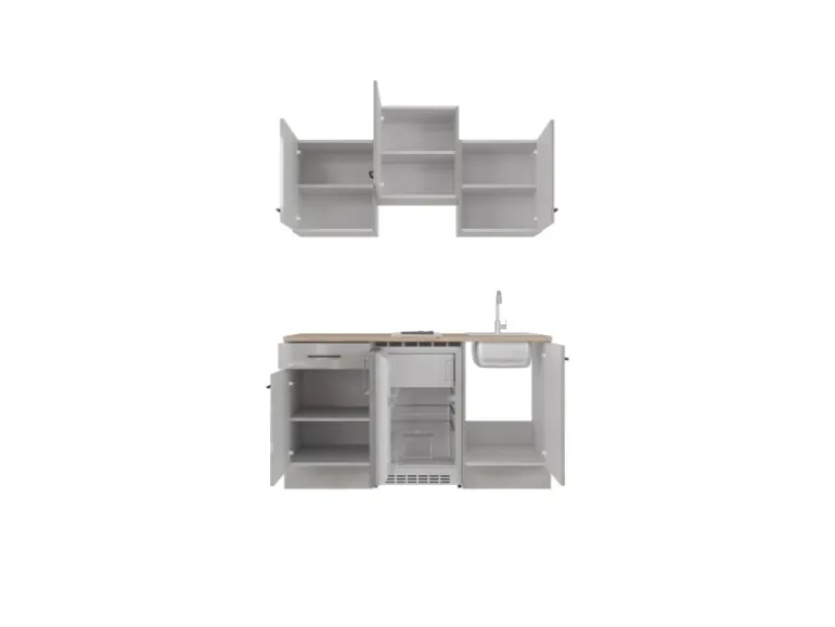 Der Single-Küchenblock wird Ihnen zerlegt geliefert und eignet sich zur flexiblen Selbstmontage (links oder rechts montierbar).Die Lieferung erfolgt ohne Dekoration und Armaturen. Die Arbeitsplatte wird ohne Ausschnitte geliefert.