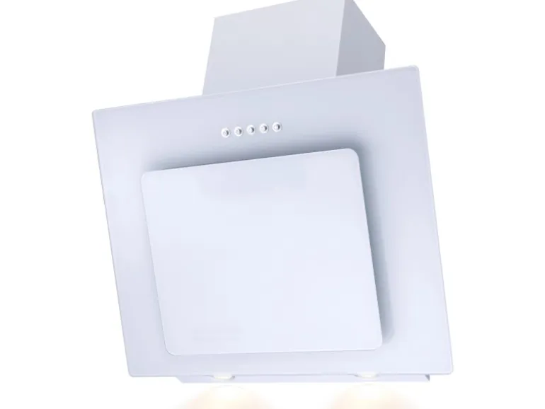 1 Dunstabzugshaube mit Randabsaugung in Glas Weiß mit Teleskopkaminschacht
