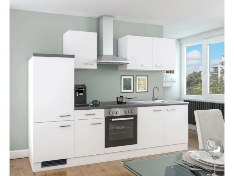 Die 270 cm breite Küchenzeile (B x H x T) besteht aus: