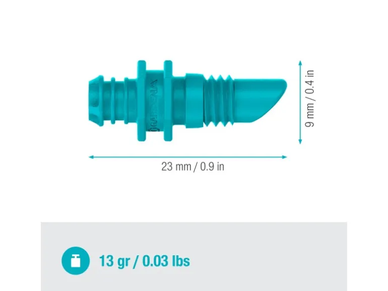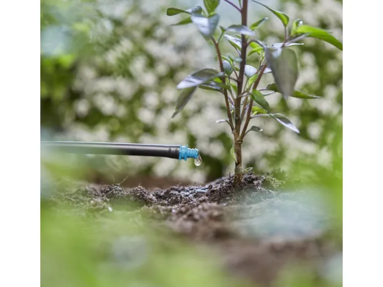 Der Endtropfer 2 l/h von Gardena ermöglicht eine punktuelle und damit wassersparende Bewässerung von einzelnen Topfpflanzen. Er wird am Ende des 4,6-mm-Verteilerrohres verwendet und gibt dann eine Wassermenge von 2 Litern pro Stunde aus. Der Endtropfer ist zudem für das 13-mm-Verlegerohr geeignet, nachdem mit Hilfe des Montagewerkzeuges eine Öffnung ins Rohr gestanzt wurde. Dadurch können Pflanzen mit ähnlichem Wasserbedarf wie zum Beispiel Hecken bewässert werden. Die Installation der Micro-Drip-System-Komponente ist durch die clevere Easy & Flexible Verbindungstechnik leicht. Der Endtropfer wird einfach ins Verteilerrohr oder Verlegerohr eingedreht, flexibel erweitert und mühelos entfernt. Der Endtropfer 2 l/h von Gardena ist ein Qualitätsprodukt Made in Germany.