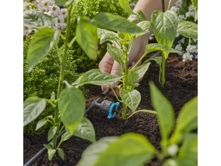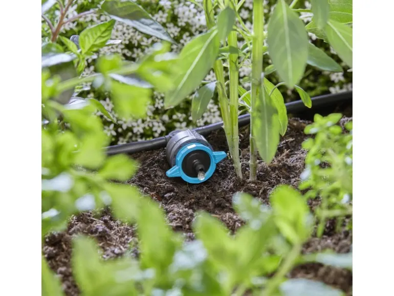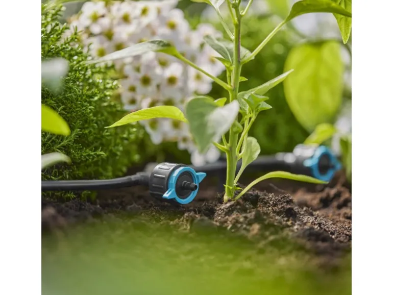 Der regulierbare und druckausgleichende Reihentropfer 1-8 l/h von Gardena ist zuverlässig bei der Bewässerung von in Reihe stehenden Topf- und Beetpflanzen. Der Reihentropfer wird innerhalb der Micro-Drip-Systems-Gartenbewässerung mit dem 4,6-mm-Verteilerrohr verbunden. Die Wasserausbringungsmenge kann individuell per Skalierung zwischen 1 und 8 Liter pro Stunde festgelegt werden. Daher ist die MDS-Komponente ideal für einen unterschiedlichen oder bei einem steigenden Wasserbedarf geeignet. Durch die Druckkompensierung erhalten die Pflanzen in Trögen mit Höhenunterschieden auf Balkon und Terrasse oder Hanglage konstant die gewünschte Wassermenge. Die eingebaute, selbstreinigende Labyrinth Technik sorgt dafür, dass der Ausgang des Reihentropfers nicht verstopft. Das macht ihn überaus pflegeleicht. Das Verbinden und Lösen des Reihentropfers vom Verteilerrohr ist dank der einfachen Installation durch die Easy & Flexible Verbindungstechnik sehr komfortabel und verleiht eine hohe Flexibilität.