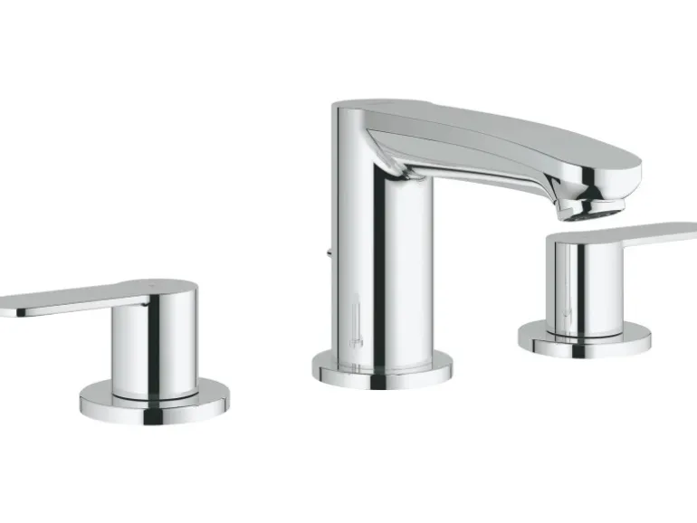 Wenn Sie auf der Suche nach dem Besonderen sind, das ein neues Design-Level und ein neues Leistungsniveau in Ihr Badezimmer bringt, dann schauen Sie sich die Grohe 3-Loch-Waschtischbatterie Eurostyle Cosmopolitan an. Der seitliche montierte Hebel ergänzt den eleganten modernen Auslauf perfekt.