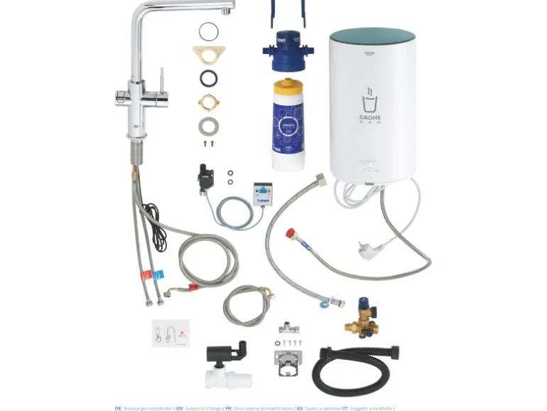 Dank Grohe Red Filter werden Verunreinigungen im Wasser, wie zum Beispiel Kalk, Kesselstein und Schwermetalle weitgehend aus dem Wasser gefiltert. Dies erhöht die Qualität des Leitungswassers und verlängert zusätzlich die Lebensdauer von Armatur und Boiler. Der 5-Phasen Filter hat eine Kapazität von 600 l bei 20° dKH und verfügt über einen Durchflussmesser.