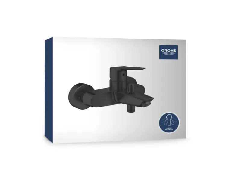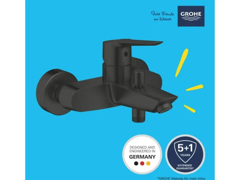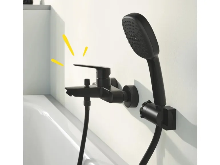 Stufenlose und leichtgängige Bedienung sowie klare, moderne Linien – die Grohe QuickFix Einhand-Wannenbatterie Start ist jetzt sogar noch besser. Die neue Grohe Start Kollektion wurde in Form und Funktion für die Anforderungen moderner Badezimmer überarbeitet und verbessert. Sie bietet eine schlanke, zeitgemäße Optik und noch mehr Komfort. Diese elegante, mattschwarze Einhand-Badarmatur für die Wandmontage verfügt über einen robusten Metallhebel für eine mühelose Bedienung. Dank der Grohe SilkMove Keramikkartusche lassen sich Wassermenge und -temperatur leichtgängig und präzise regeln – Jahr für Jahr. Ein einstellbarer Durchflussbegrenzer reduziert den Wasserverbrauch. Ein Temperaturbegrenzer spart Energie. Mit der praktischen automatischen Umstellung wechseln Sie mühelos zwischen Badewannen- und Duschstrahl. Nehmen Sie einfach die Grohe Handbrause Ihrer Wahl hinzu. Damit wird das Ausspülen von Shampoo in der Badewanne zu einem wahren Vergnügen. Ein in den Brauseabgang integriertes Rückschlagventil schützt vor dem Rückfluss von Abwasser in die Wasserversorgung. Mit der robusten und pflegeleichten Grohe Long-Life Oberfläche bleibt der makellos strahlende Glanz der Badezimmer-Armatur über viele Jahre hinweg erhalten. Grohe Start – die moderne Kollektion, die Eleganz und Leistung vereint.