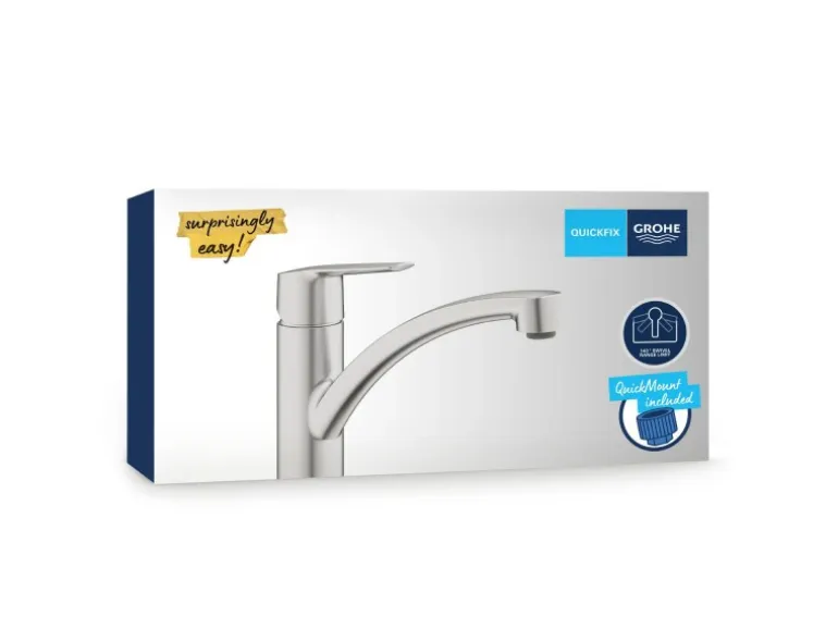 Die Einhebel-Spültischarmatur ist für die Einlochmontage konzipiert und lässt sich dank flexibler Anschlussschläuche unkompliziert installieren. Die Grohe SilkMove Kartuschen-Technologie bietet eine präzise Steuerung und leichtgängige Bedienung der Aramtur während der gesamten Lebensdauer. Die einfache Montage wird mit dem Grohe QuickFix Plus Schnellbefestigungssystem enorm vereinfacht und unterstützt somit ideal bei der schnellen Modernisierung Ihrer Küche. Für diese Spültischarmatur wird ein Wasserdruck von mindestens 1,0 bar empfohlen.