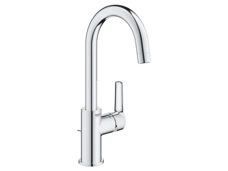 – Leichtgängige Einhebel-Waschtischbatterie in L-Size mit hohem Rohrauslauf für die Einlochmontage