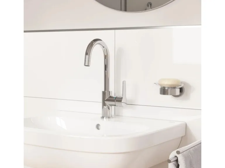Die Einhebel-Mischbatterie ist für die Einloch-Montage konzipiert und verfügt über flexible Anschlussschläuche für eine einfache Installation. Die Grohe SilkMove Kartuschen-Technologie ist besonders schlank, präzise in der Steuerung und leichtgängig in der Bedienung. Die Montage der Waschtischarmatur gelingt mit Hilfe des Grohe QuickFix Schnellmontagesystems unkompliziert – ideal für eine schnelle Modernisierung Ihres Badezimmers.