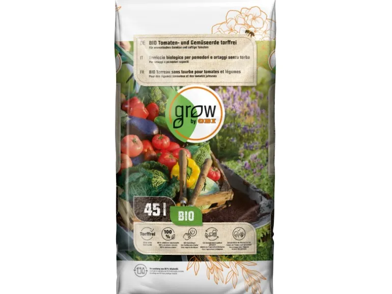 Die mit Naturdüngern gebrauchsfertig aufgedüngte Spezialerde ist mit allen wichtigen, auf Tomaten- und Gemüsepflanzen abgestimmten, Nährstoffen ausgestattet. Sie besteht zu 100 % aus natürlichen Inhaltsstoffen und ermöglicht beste Wachstumsbedingungen bei guter Strukturfestigkeit und optimaler Wurzelbelüftung. Sie unterstützt die Fruchtbildung von Tomaten und Gemüse und begünstigt aromatische Früchte. Die Tomatenerde ist nach EG-Verordnung 834/2007 für den Landbau zugelassen.
