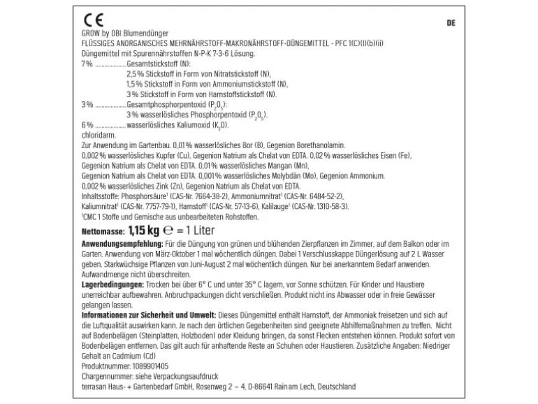 EG-Düngemittel, NPK-Dünger-Lösung 7+3+6