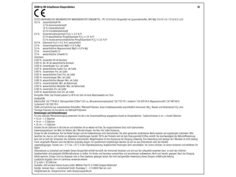 EG-Düngemittel, NPK(+MgO)-Dünger 13+6+10(+3) mit Spurennährstoffen