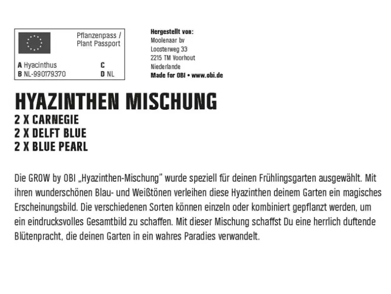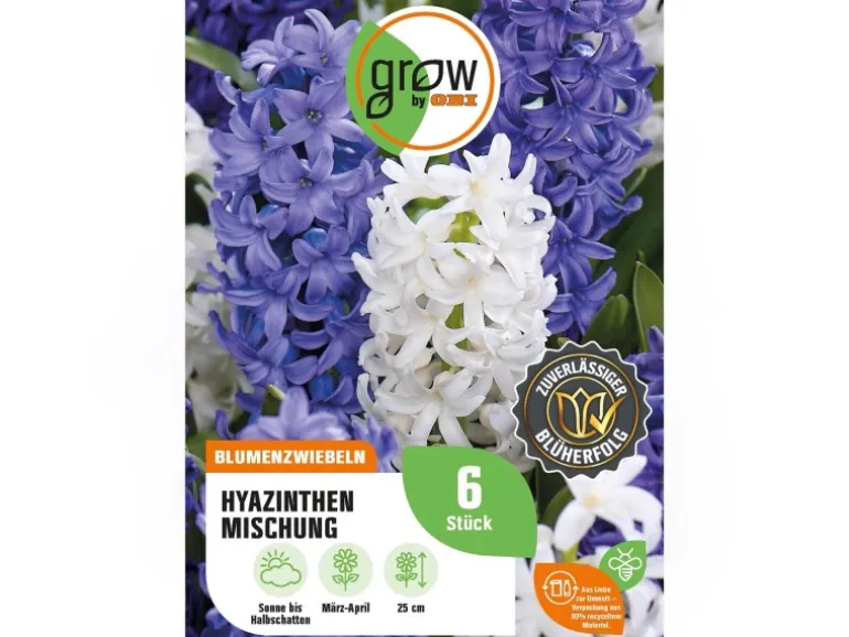 Die GROW by OBI „Hyazinthen-Mischung“ wurde speziell für deinen Frühlingsgarten ausgewählt. Mit ihren wunderschönen Blau- und Weißtönen verleihen diese Hyazinthen deinem Garten ein magisches Erscheinungsbild. Die verschiedenen Sorten können einzeln oder kombiniert gepflanzt werden, um ein eindrucksvolles Gesamtbild zu schaffen. Mit dieser Kollektion schaffst Du eine herrlich duftende Blütenpracht, die deinen Garten in ein wahres Paradies verwandelt.