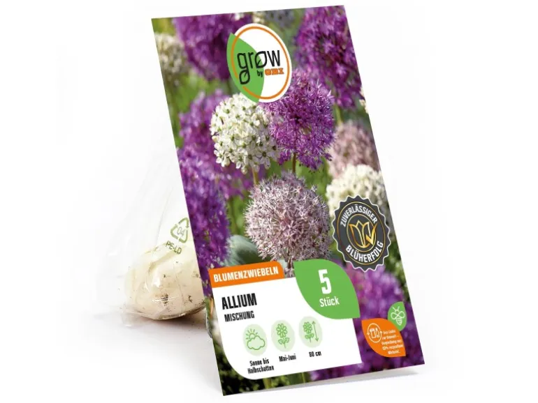 Die GROW by OBI Zierlauch Blumenzwiebel „Mixed“ (Allium) ist eine vielseitige Mischung aus verschiedenen Sorten mit auffälligen, violetten Blütenköpfen. Diese Sorte zeichnet sich durch ihre kräftigen Farben aus. Besonders in Gruppen gepflanzt, sorgen diese Zierlauchblumen für eine spektakuläre Darbietung im Gartenbeet. Sie sind nicht nur attraktiv für Menschen, sondern auch für bestäubende Insekten wie Bienen und Schmetterlinge.