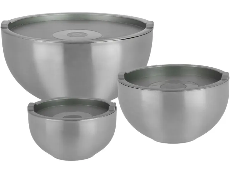 GSW Thermoschüssel-Set 6-tlg. mit Kunststoffdeckel rostfreien EdelstahlDieses Thermoschüssel-Set aus hochwertigem Edelstahl rostfrei ist doppelwandig, bruchsicher, robust und somit ideal zum langen Warmhalten und Kühlen aller Speisen, wie z. B. Kartoffeln, Gemüse, Salate, Süßspeisen oder Eis. Es verfügt über dicht verschließbare Kunststoffdeckel und dient hervorragend zum Transportieren und zur Aufbewahrung.Das Set bestehend aus:Thermoschüssel mit Kunststoffdeckel ø ca.18 x H 10,0 cm / ca. 1,3 LThermoschüssel mit Kunststoffdeckel ø ca. 22 x H 12,0 cm / ca. 2,5 LThermoschüssel mit Kunststoffdeckel ø ca. 26 x H 13,0 cm / ca. 4,2 L