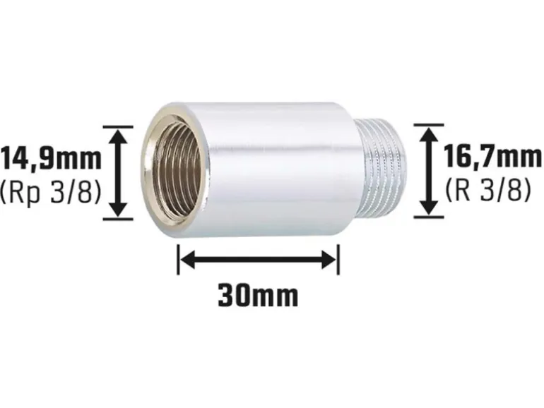 Gewindefitting, beispielsweise als Verlängerung für Armaturenanschlüsse um 30 mm