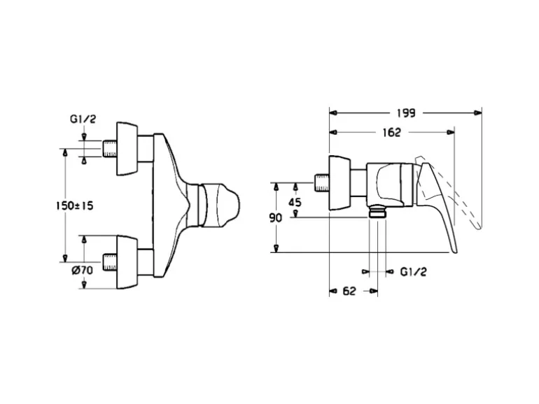 Zusätzlich bietet die Armatur einen integrierten Temperaturbegrenzer und eine Heißwassersperre für sicheren Gebrauch. Mit S-Anschlüssen, Schalldämpfern und Rückflussverhinderer ausgestattet, sorgt diese Duscharmatur für leise und zuverlässige Leistung. Die Wandmontage ermöglicht eine einfache Integration in jedes Badezimmerdesign.